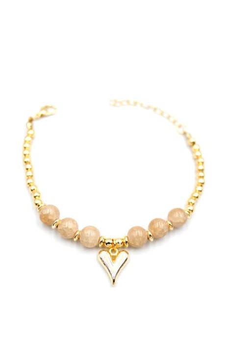 Boncuklu Kalp Bileklik - Krem