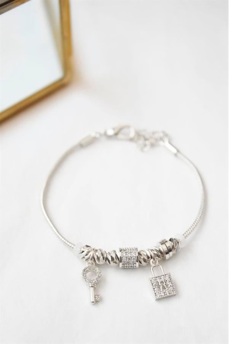 Kilit Anahtar Charmlı Bileklik - Gümüş