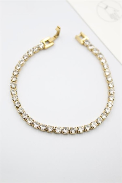 Taşlı Su Yolu Çelik Bileklik - Altın