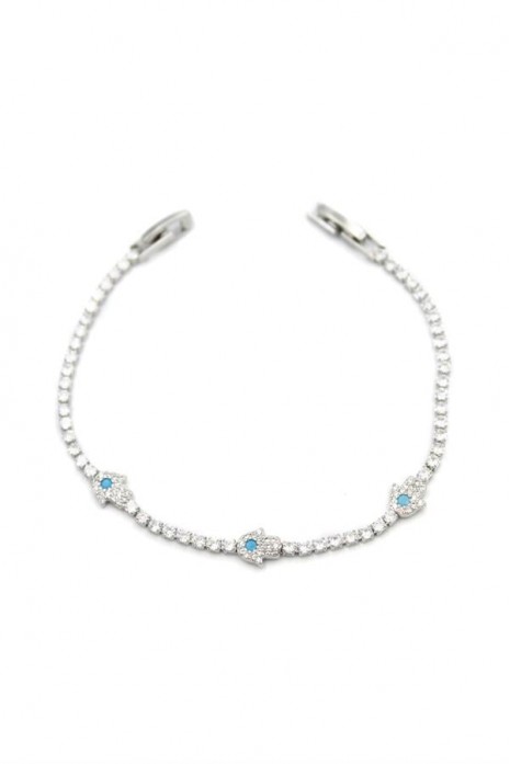 Taşlı Fatıma Ana Eli Bileklik - Gümüş