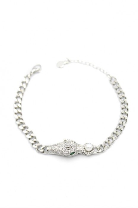 Zirkon Taşlı Leopar Bileklik - Gümüş