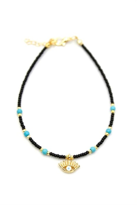 Boncuklu Göz Halhal - Siyah