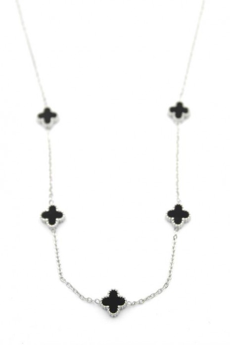 Vc Yonca Kolye - Gümüş Renk - Siyah