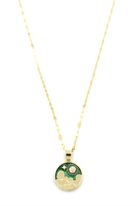 İncili Etnik Desen Kapaklı Kolye - Beyaz