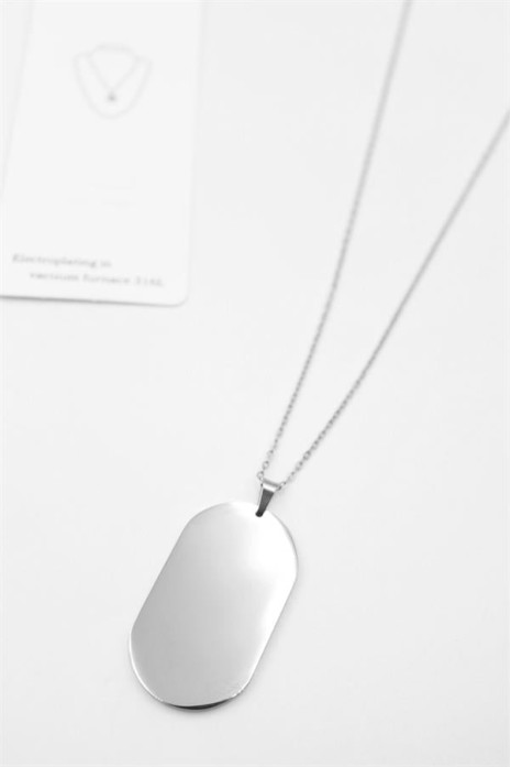 Oval Plaka Kolye - Gümüş