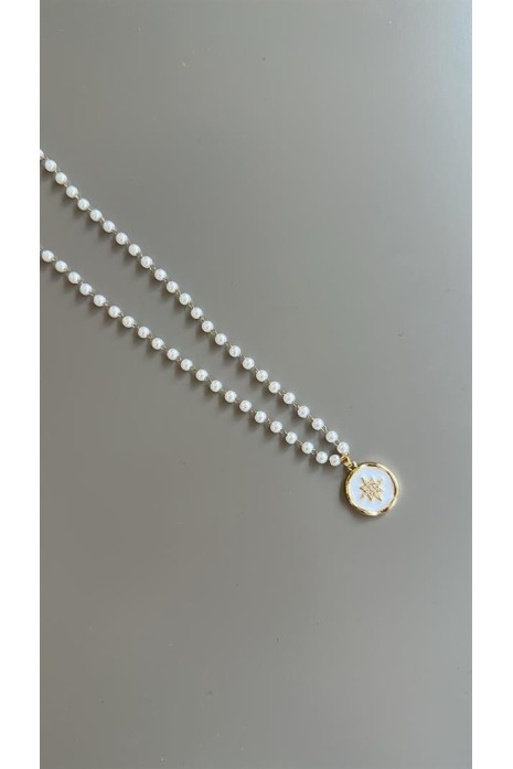 Mineli Kutup Yıldızı İnci Kolye - Altın