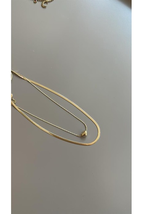 İkili Zincir Kalp Kolye - Altın