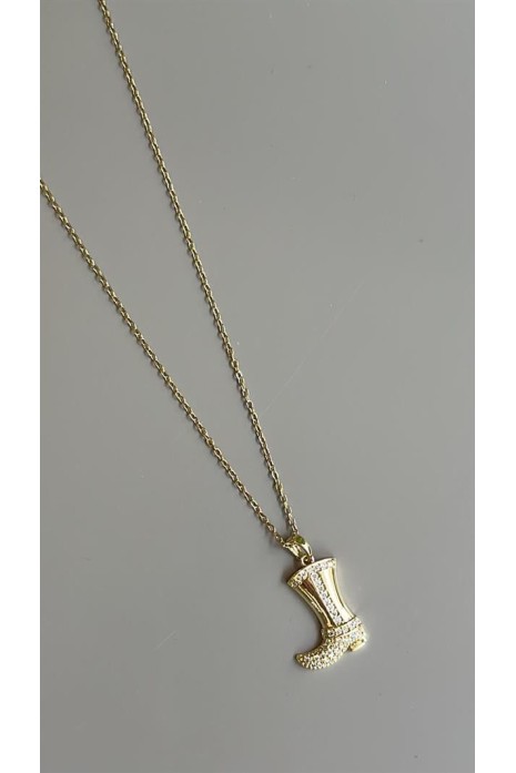 Taşlı Çizme Kolye - Altın