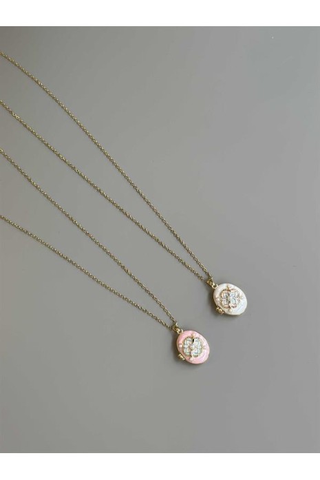 İncili Etnik Desen Kapaklı Kolye - Pembe