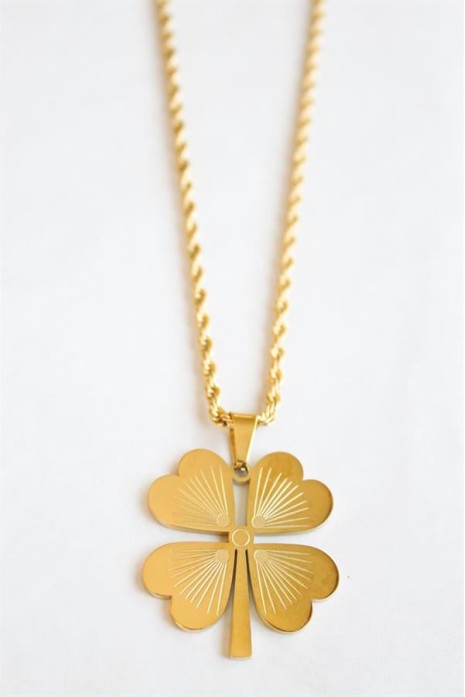 Çelik Yonca Kolye - Altın