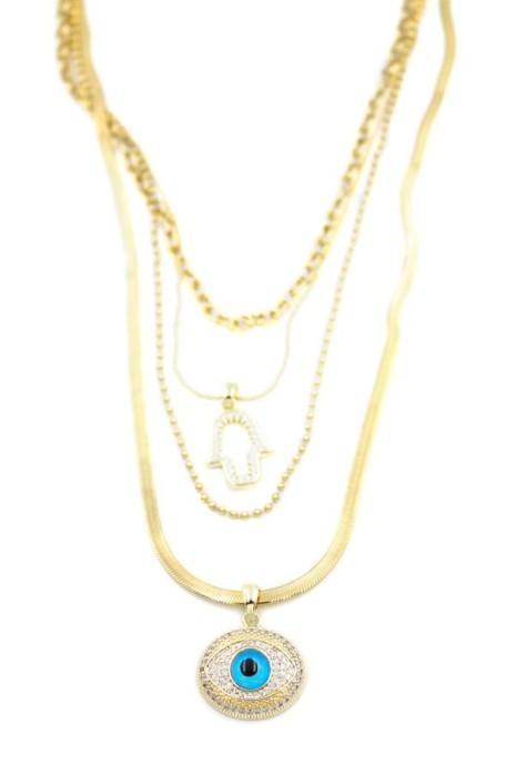 Dört Zincirli Kolye-80cm - Altın