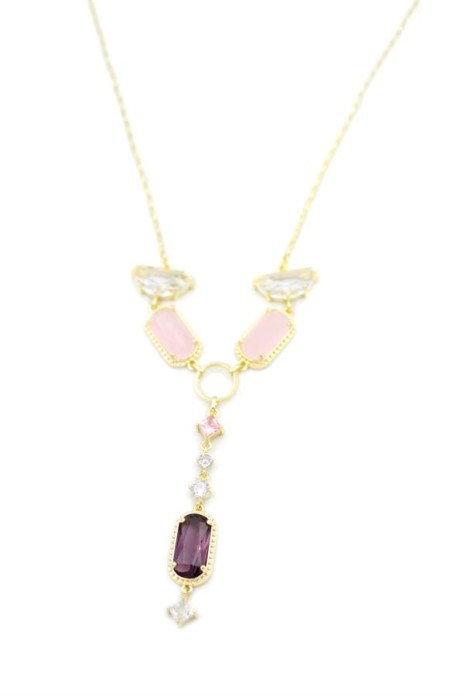 Pembe Taşlı Kolye - Altın