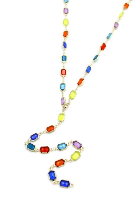 Renkli Taşlı Y Kolye - Altın