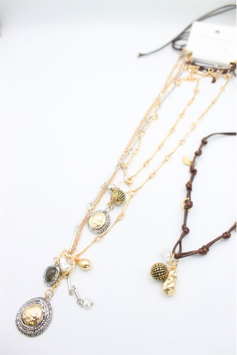 4'lü Metal İp Set Kolye - Altın