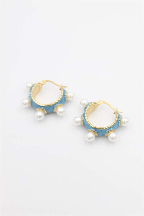 İncili Mineli Halka Küpe - Turkuaz