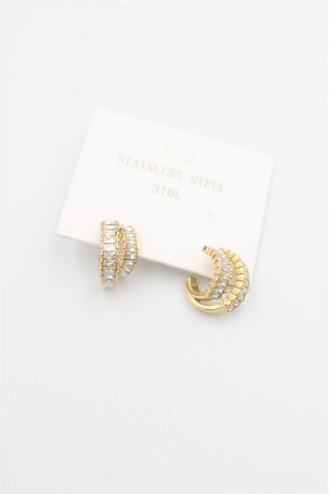 Baget Taşlı Küpe - Altın