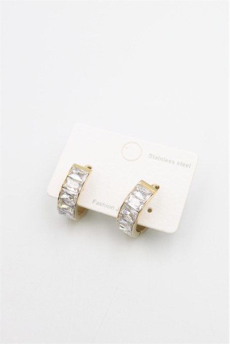 Taşlı Yıldız Çelik Halka Küpe - Altın