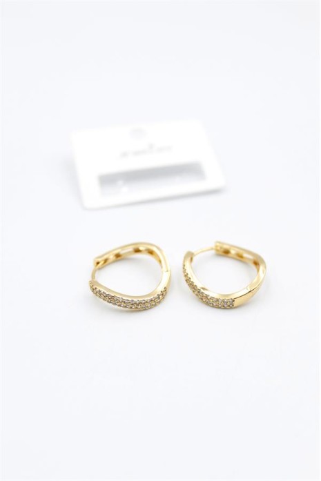 Zirkon Taşlı Göz Halka Küpe - Altın