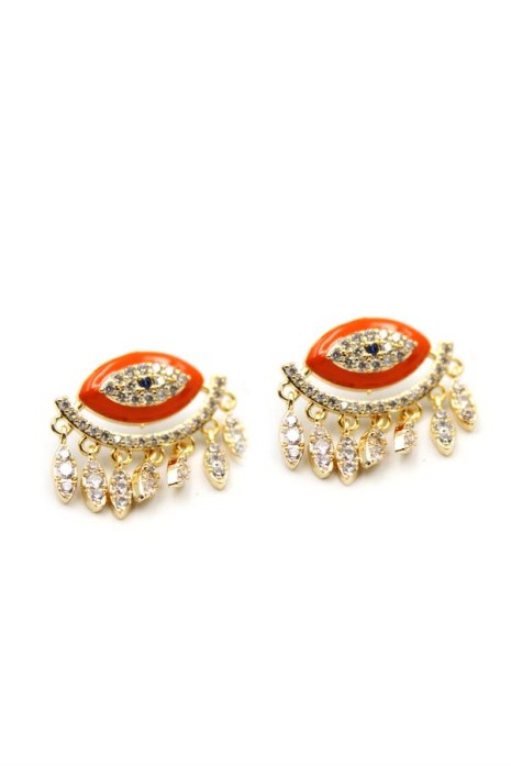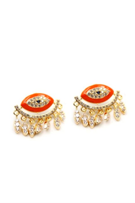 Taşlı Göz Küpe - Turuncu