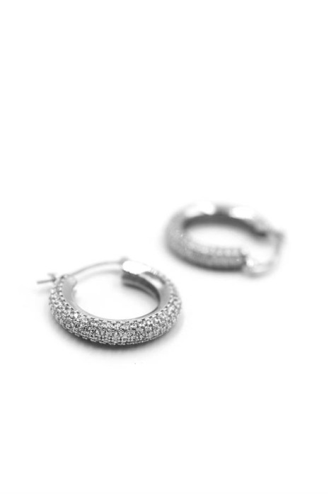 Taşlı Halka Küpe - Gümüş