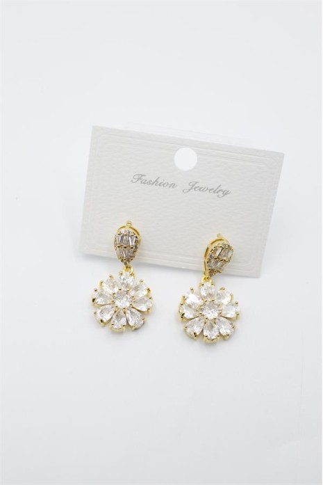 Taşlı Çiçek Küpe - Altın