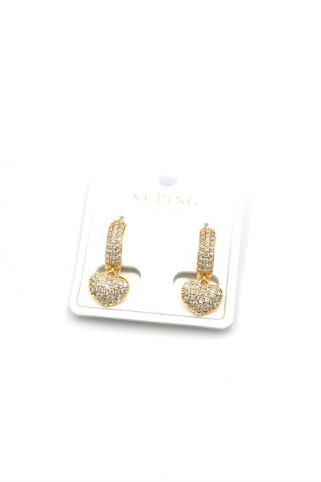 Taşlı Kalp Küpe - Rose