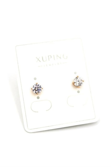 Orta Boy Tek Taş Küpe - Altın
