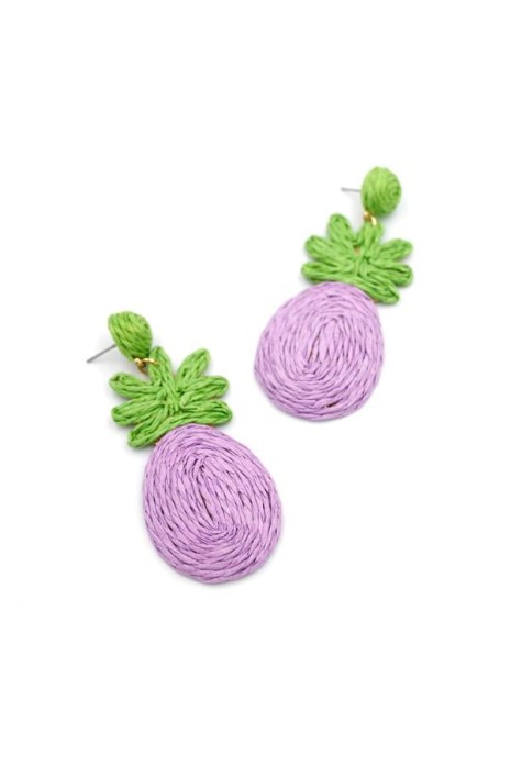 Ananas Hasır Küpe - Mor