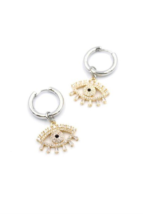 Zirkon Taşlı Göz Halka Küpe - Altın