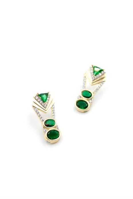 Yeşil Taşlı Küpe - Altın