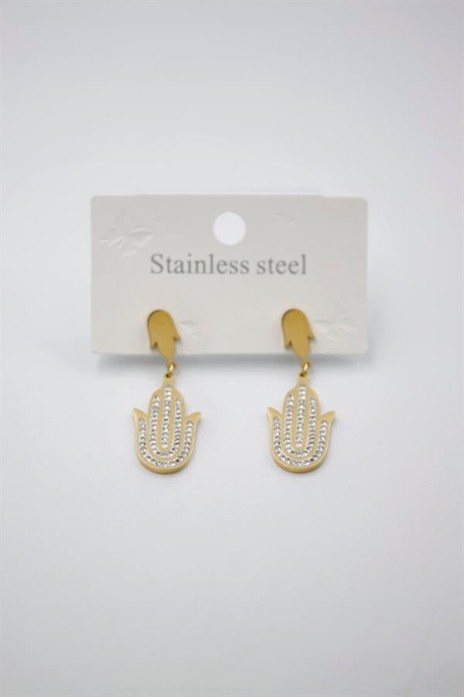 Taşlı Fatıma Eli Küpe - Altın