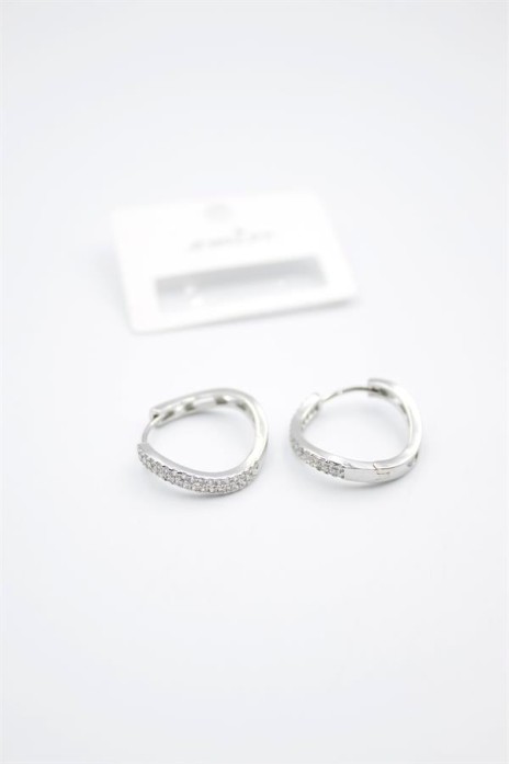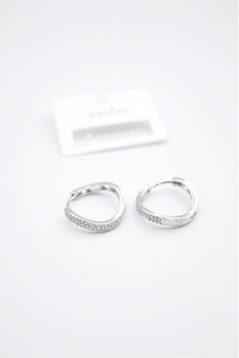 Taşlı Halka Küpe - Gümüş