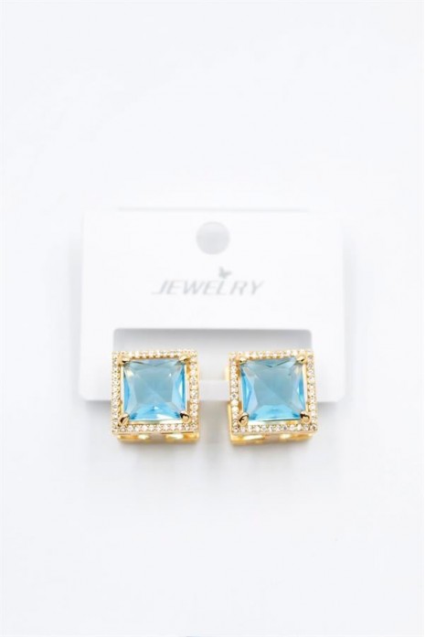 Kare Taşlı Küpe - Turkuaz