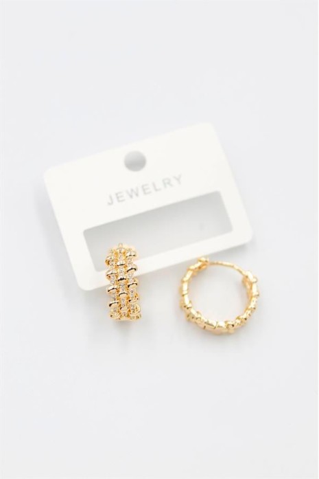 Taşlı Halka Küpe - Altın