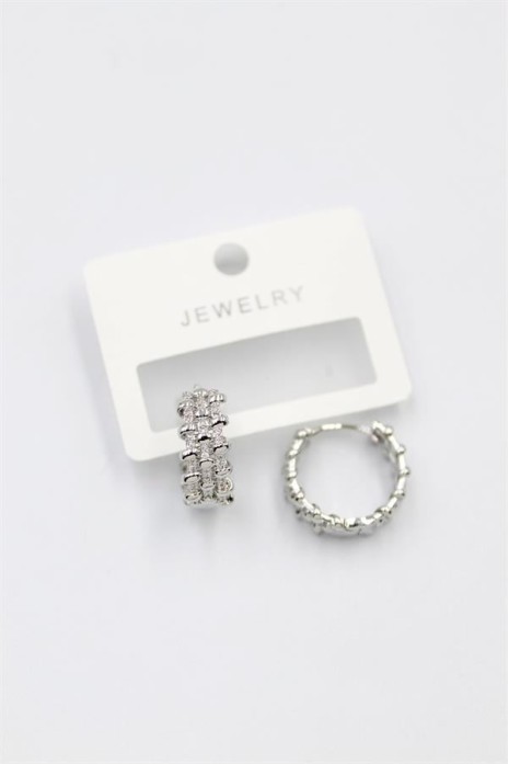 Taşlı Halka Küpe - Gümüş
