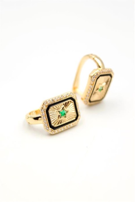 Yıldız Taşlı Küpe - Yeşil