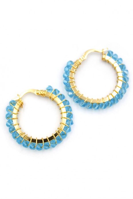 Kristal Boncuk Halka Küpe - Turkuaz