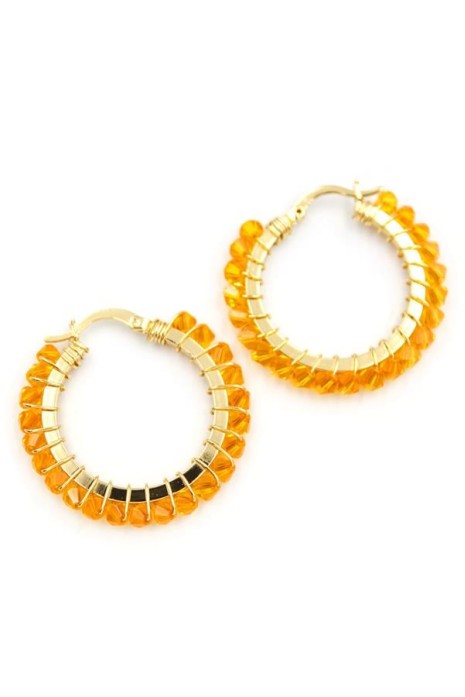 Kristal Boncuk Halka Küpe - Turuncu