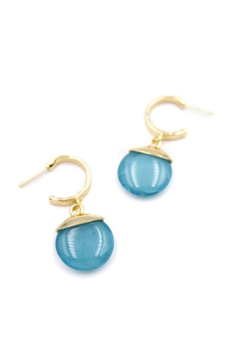 Taşlı Halkalı Küpe - Turkuaz