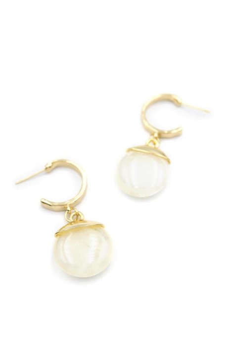 Taşlı Halkalı Küpe - Krem