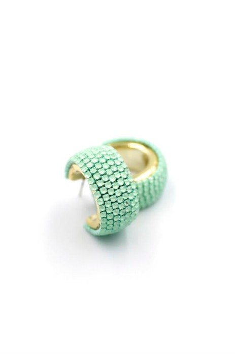 Taşlı Halka Küpe - Yeşil