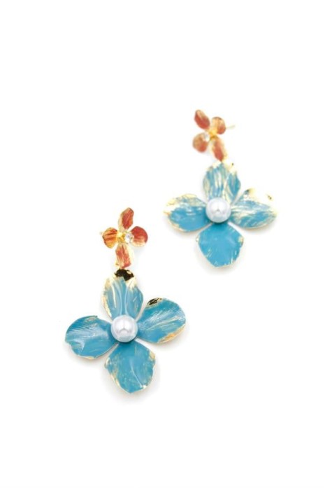 Metal Çiçek Küpe - Turkuaz
