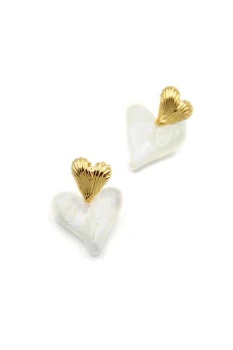 İnci Kalp Küpe - Altın
