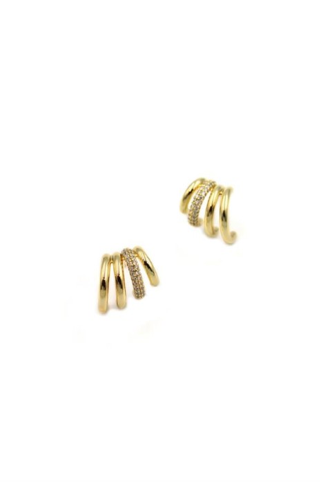 Taşlı Kıvrımlı Küpe - Altın