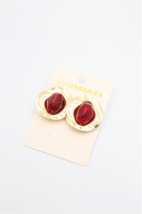 Taşlı Metal Küpe - Bordo