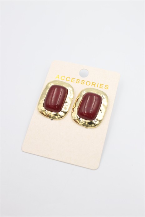 Taşlı Metal Küpe - Bordo