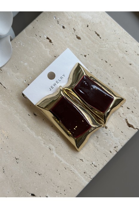 Mineli Kıvrımlı Küpe - Kahverengi