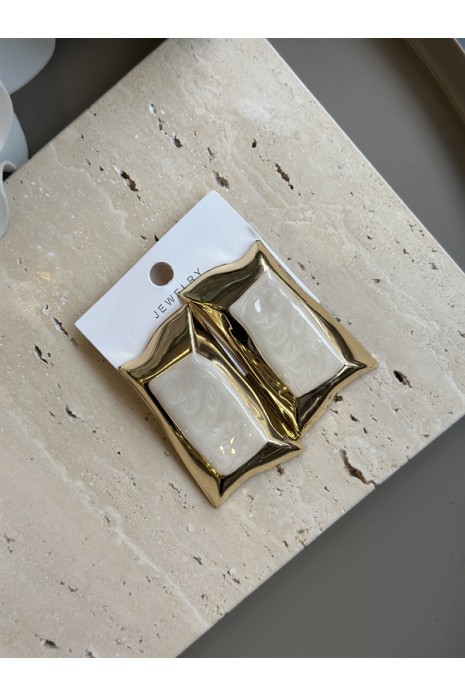 Mineli Kıvrımlı Küpe - Krem