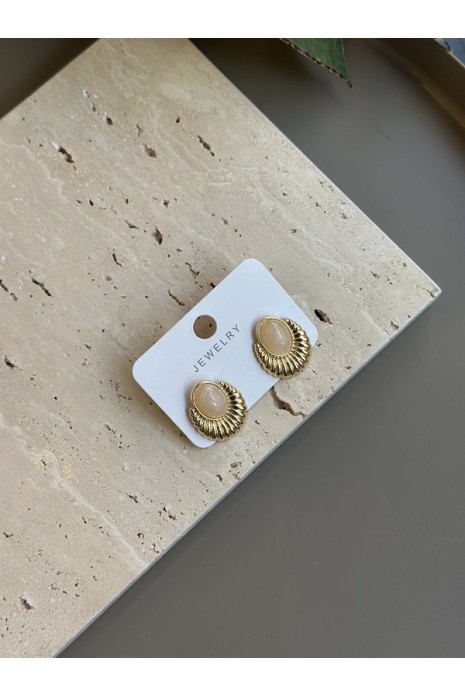 Taşlı Küpe - Krem