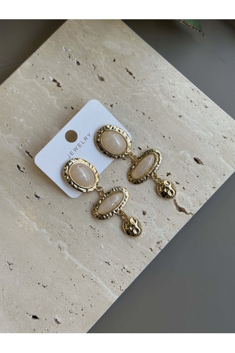Taşlı Küpe - Krem